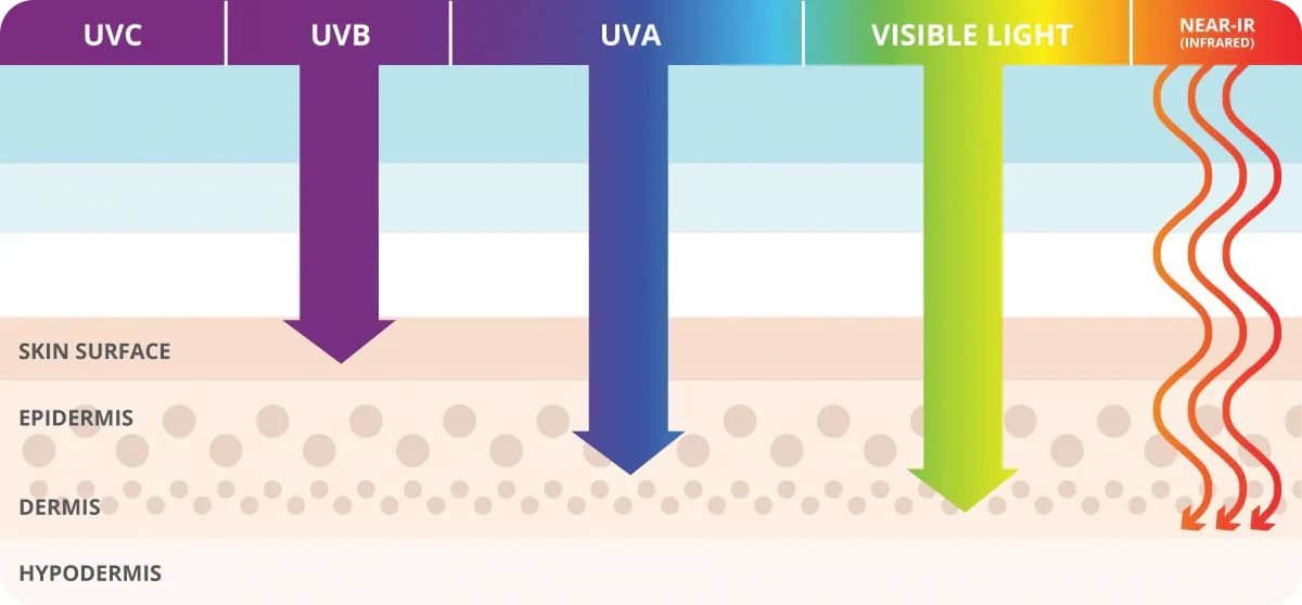 damage from exposure to blue light, infrared, and