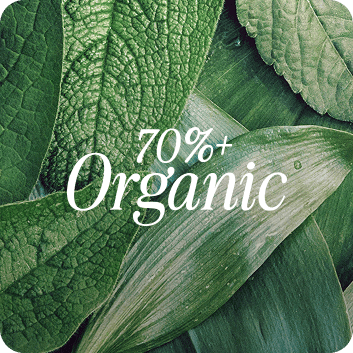 Every formula is made with as many sustainably farmed, certified organic ingredients as possible—at least 70%+ in everything we make.