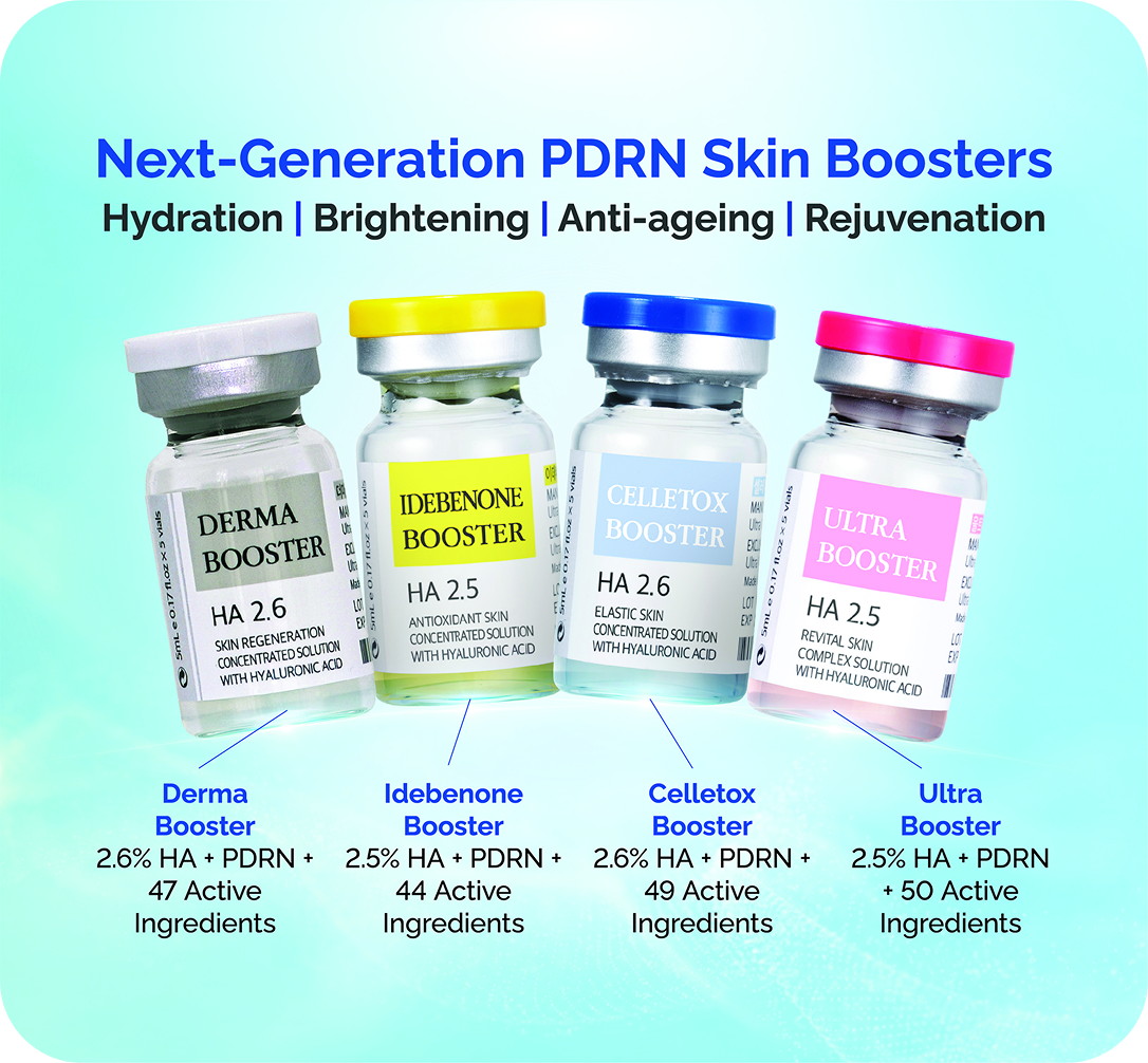 Ultra V PDRN Skin Boosters are the result of years of scientific research and patented technology, combining 50 powerful ingredients including PDRN, vitamins, amino acids, minerals, peptides, herbs and hyaluronic acid. This innovative blend ensures remarkable effects on the skin Ultra V mesotherapy products deliver maximum efficacy and premium quality ingredients suitable for all skin types. Formulated with ideal concentrations, these products promote supple, rejuvenated skin and stimulate collagen production, providing you with a youthful, radiant complexion.